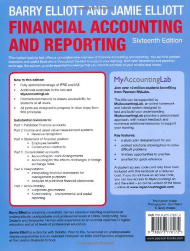 Financial Accounting and Reporting Were you looking for the book with access to MyAccountingLab? This product is the book alone, and does NOT come with access to MyAccountingLab. Buy Financial Accounting and Reporting with MyAccountingLab access card, 16/e (ISBN 9780273778264) if you need access to the MyAccountingLab as well, and save money on this brilliant resource. This market-leading text offers a comprehensive overview of financial accounting and reporting. You will find worked examples and useful illustrations throughout the text to support your learning. With both theoretical and practical coverage, the authors provide essential knowledge that you need to advance in your studies and c…