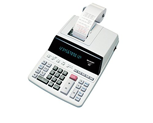 Sharp Desk Top Printing Calculator – EL-2607P. Mains powered heavy duty two colour printing calculator with a large 12-digit fluorescent display professional keyboard average function GT memory built-in GT MU Tax functions. SH02366 Sharp Printing Calculator 12-digit Fluorescent Display EL2607PGY
